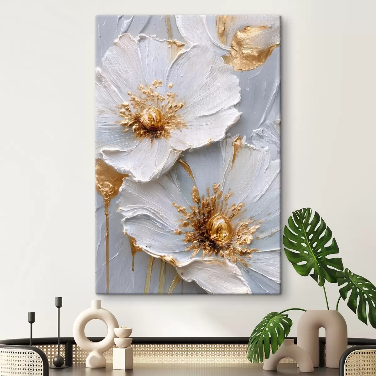 Schilderij Gestructureerde madeliefjes: impasto kunst met expressieve penseelstreken Art. s45241