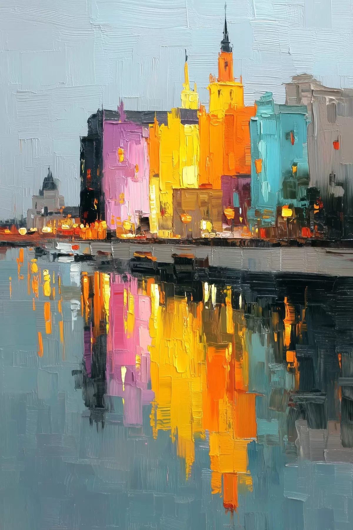 Schilderij Stadsverlichting: levendig landschap in impasto stijl Art. s45242