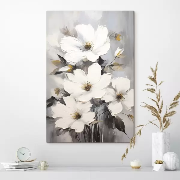 Schilderij Witte bloemen: volumetrisch schilderij op grijze achtergrond Art. s45252