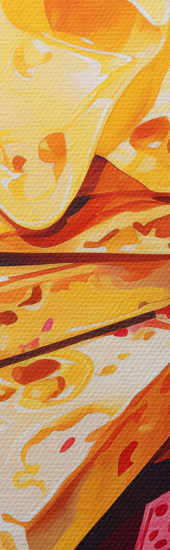 Het schilderij kan direct na ontvangst worden opgehangen. Het schilderij wordt opgespannen op een 2 cm breed houten spieraam.