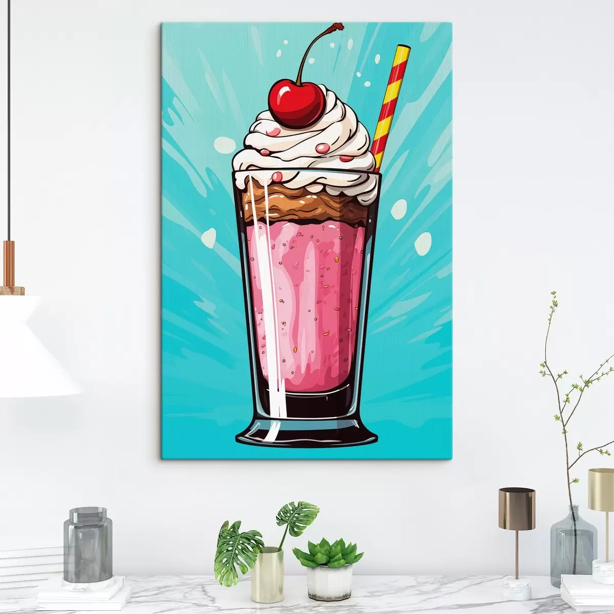 Schilderij Aardbeienmilkshake met kersen Art. s45273