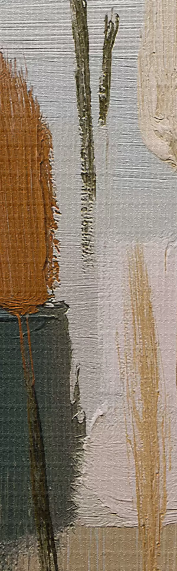 Het schilderij kan voorzichtig worden schoongeveegd met een droge zachte doek of spons; het wordt niet aanbevolen om natte producten te gebruiken. Het gebruik van een vochtige spons is alleen toegestaan als het schilderij gevernist is.