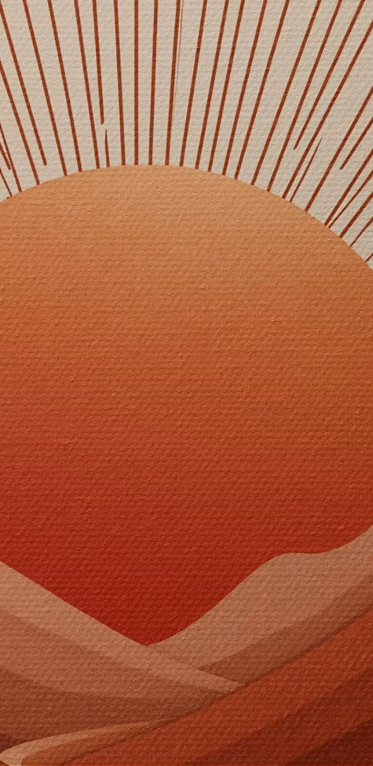 Het schilderij kan direct na ontvangst worden opgehangen. Het schilderij wordt opgespannen op een 2 cm breed houten spieraam.