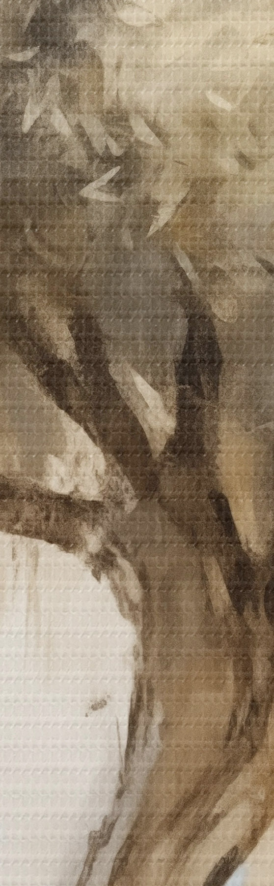 Om het doek op te spannen op spielatten zonder de afbeelding te beschadigen, gebruiken we gespiegeld beeld.