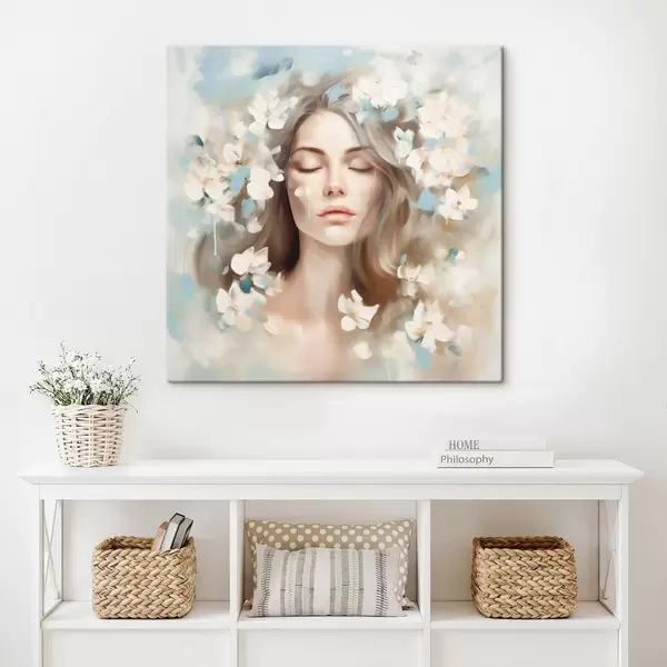 Schilderijen Abstract portret van een vrouw met bloemen in de vorm van penseelstreken s45450