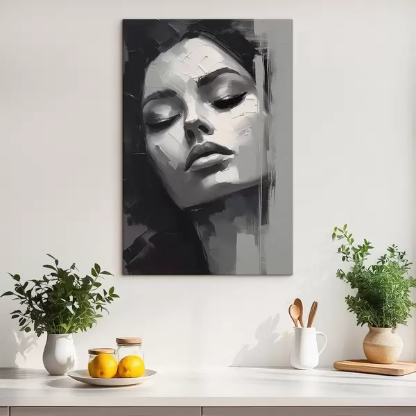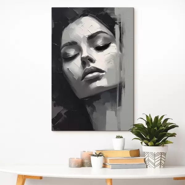 Schilderij Zwart-wit portret van een vrouw met gesloten ogen Art. s45479