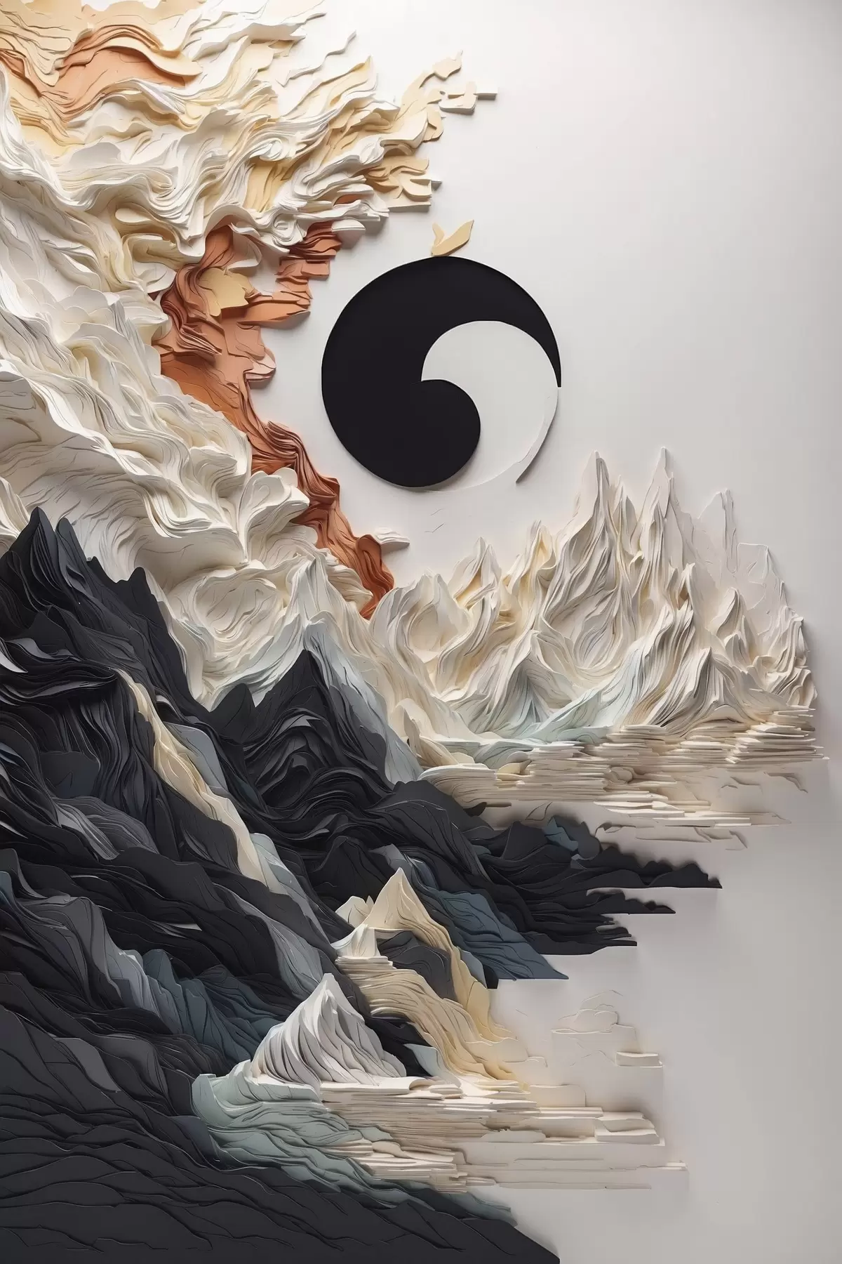 Schilderij Abstract landschap met bergen in een papieren stijl Art. s45482