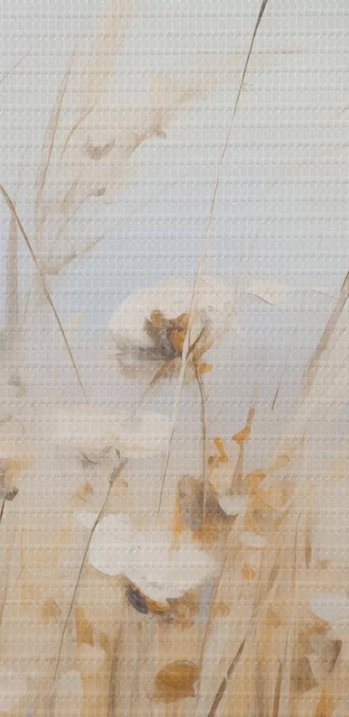 De fijne weving van draden op dit doek lijkt op het oppervlak van professionele schildersdoeken.