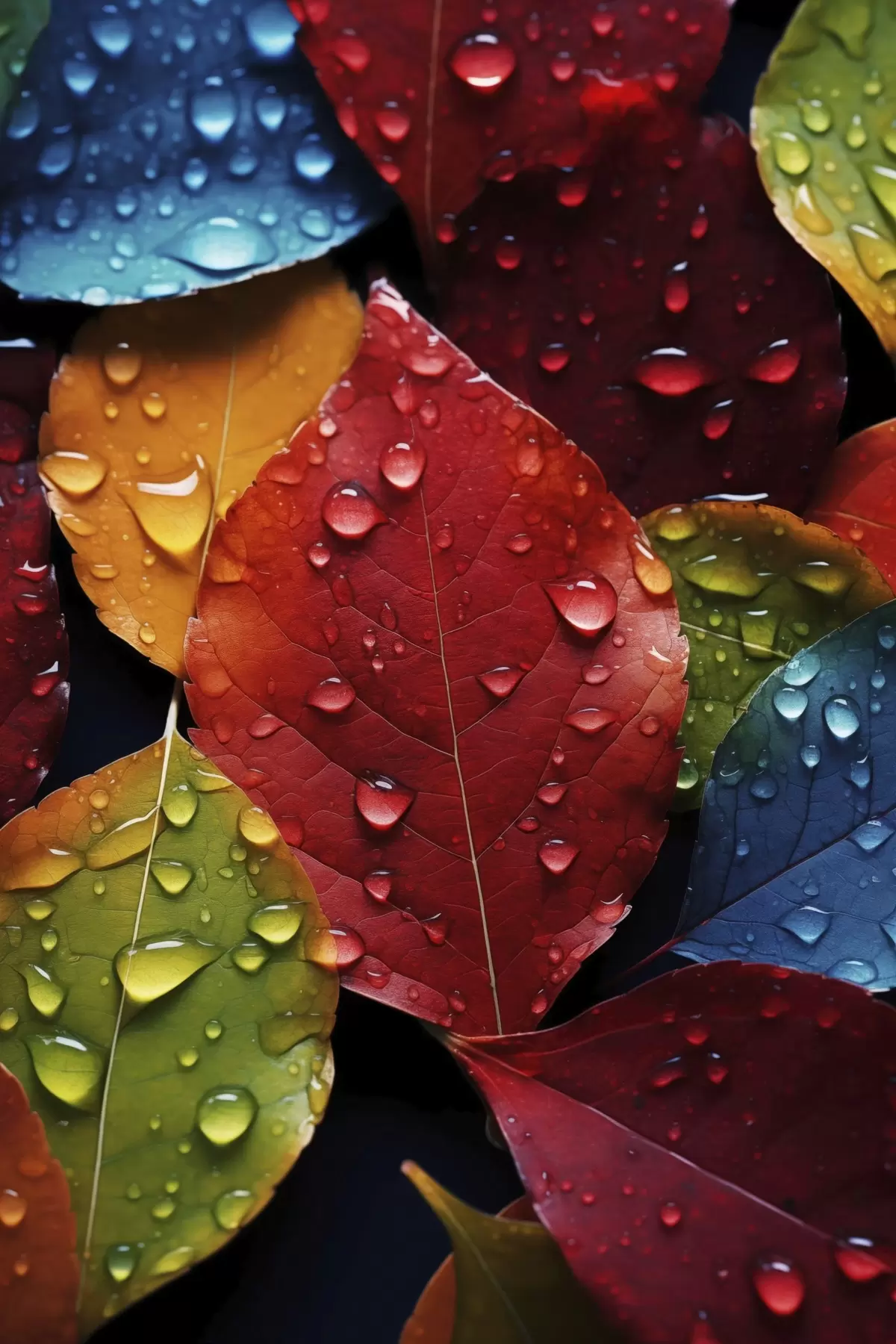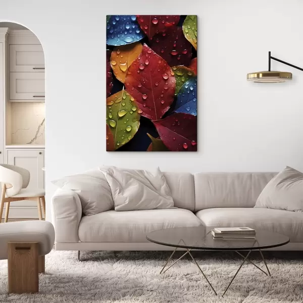 Schilderij Kleurrijke bladeren met waterdruppels Art. s45516
