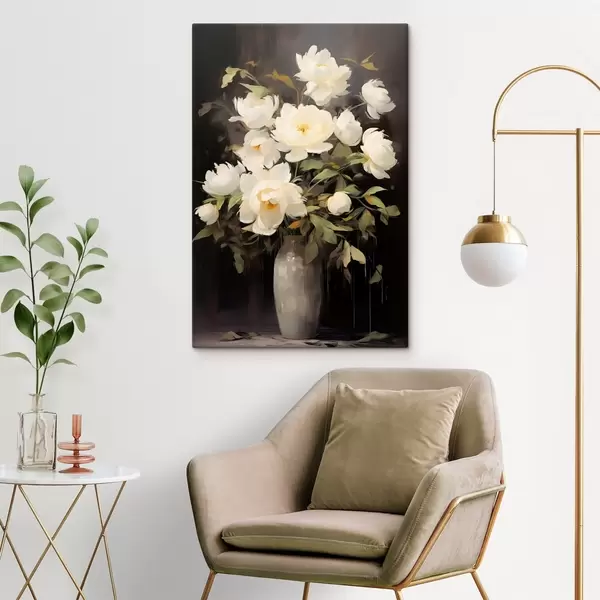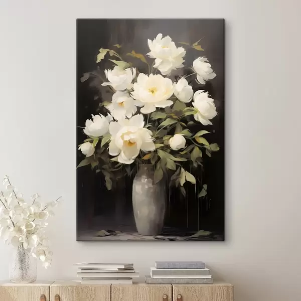 Schilderij Delicate pioenrozen in een vaas: bloemencompositie in de stijl van een schilderij Art. s45532