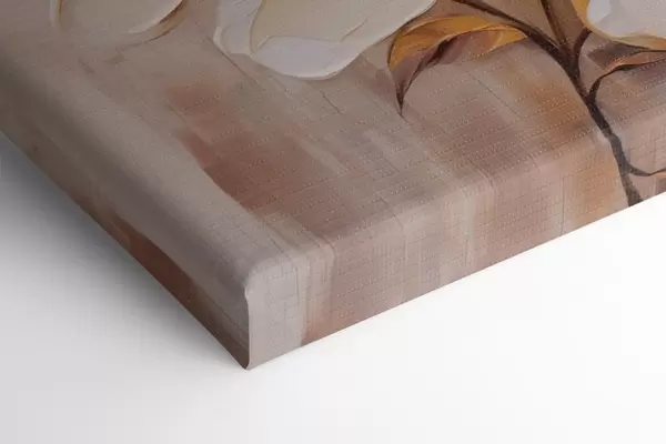 Schilderij Witte magnolia bloemen tegen een zachte, onscherpe achtergrond van beige en bruine tinten, elegante bloemencompositie Art. s45571