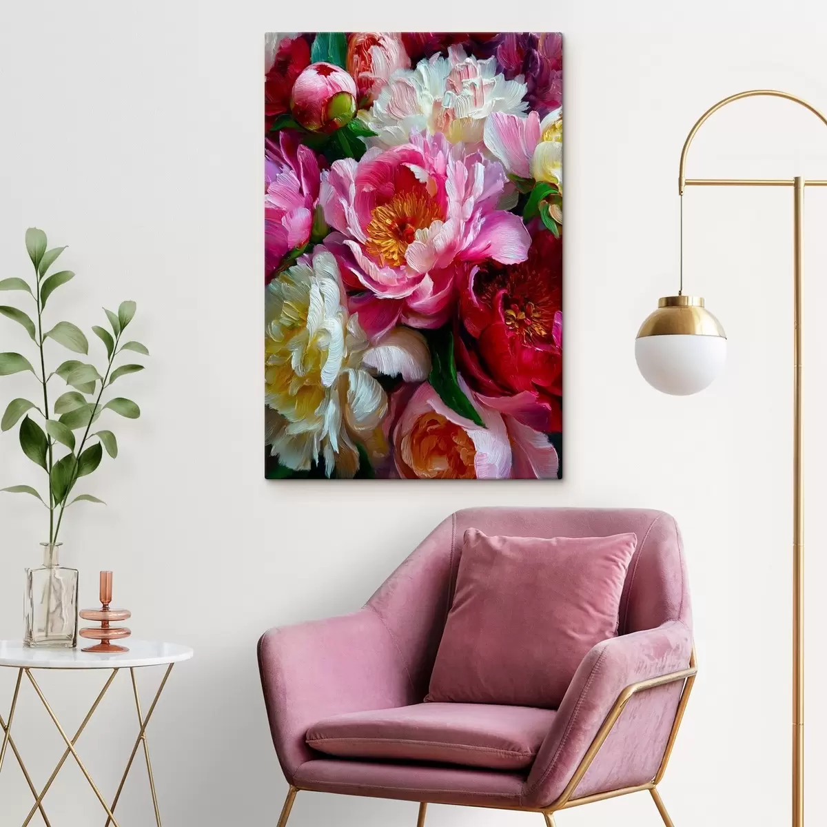 Schilderij Weelderige pioenrozen in impasto techniek Art. s45595