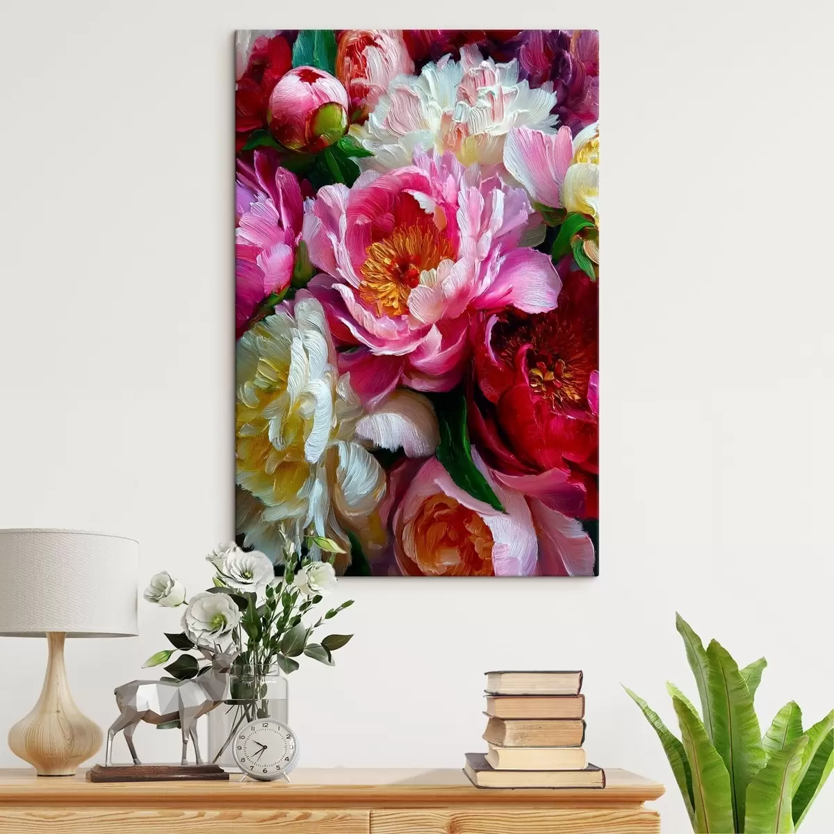 Schilderijen Weelderige pioenrozen in impasto techniek s45595