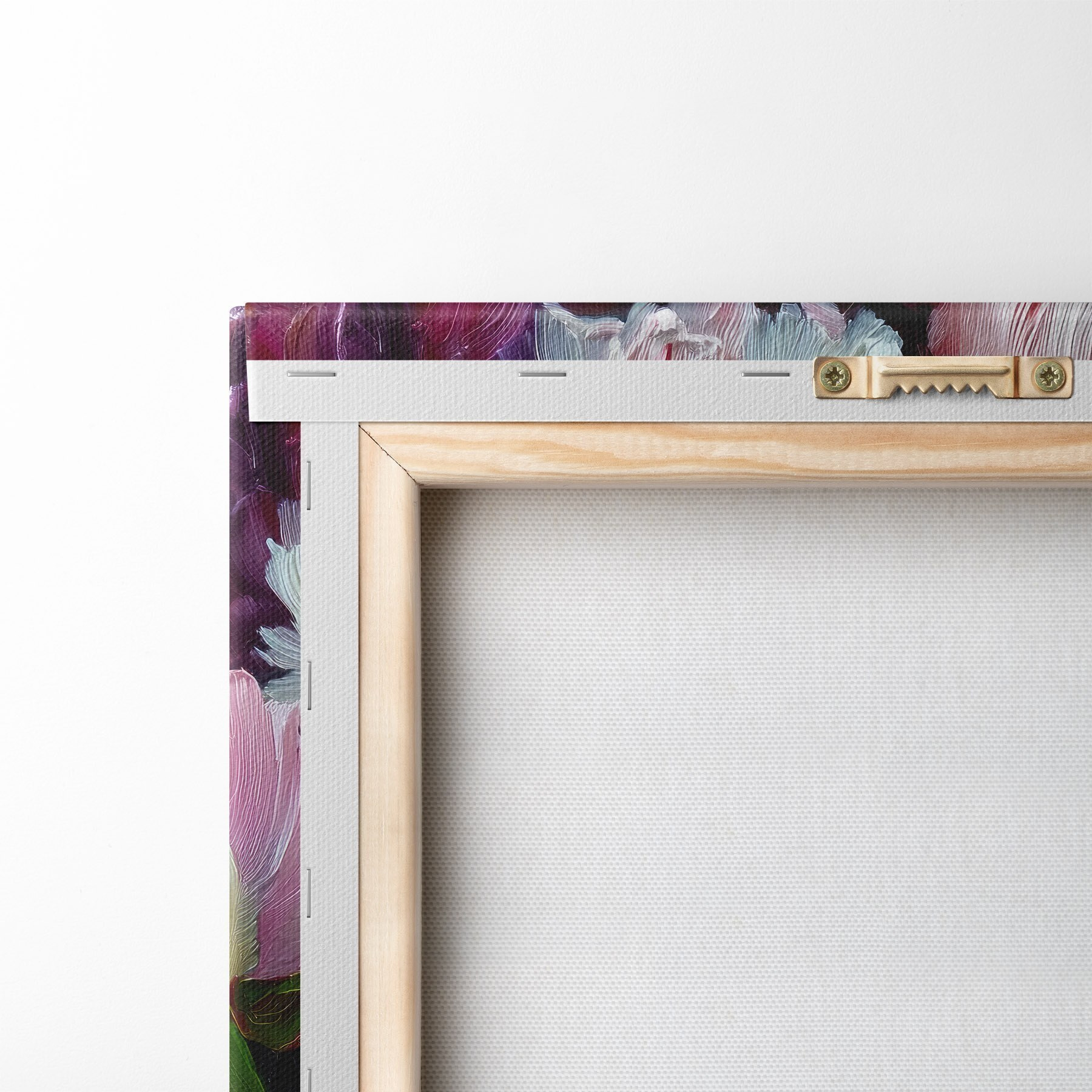 Om het doek op te spannen op spielatten zonder de afbeelding te beschadigen, gebruiken we gespiegeld beeld.