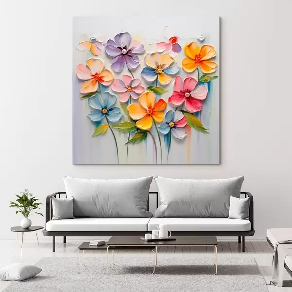 Schilderij Bloemstilleven: veelkleurige bloemen in impasto techniek Art. s45598