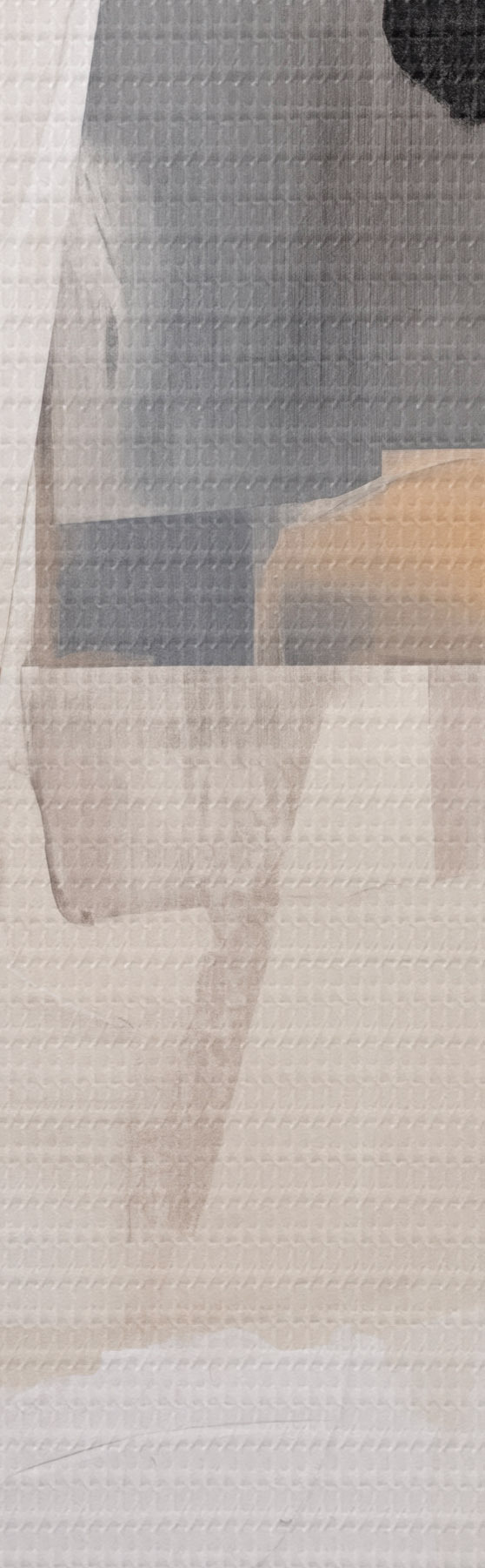 De fijne weving van draden op dit doek lijkt op het oppervlak van professionele schildersdoeken.