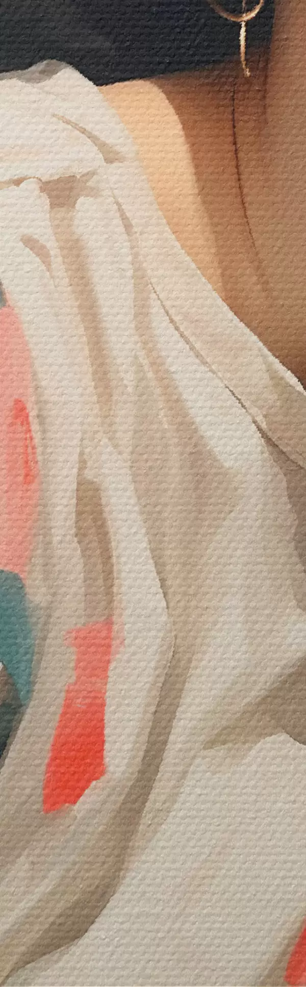 Het schilderij kan voorzichtig worden schoongeveegd met een droge zachte doek of spons; het wordt niet aanbevolen om natte producten te gebruiken. Het gebruik van een vochtige spons is alleen toegestaan als het schilderij gevernist is.
