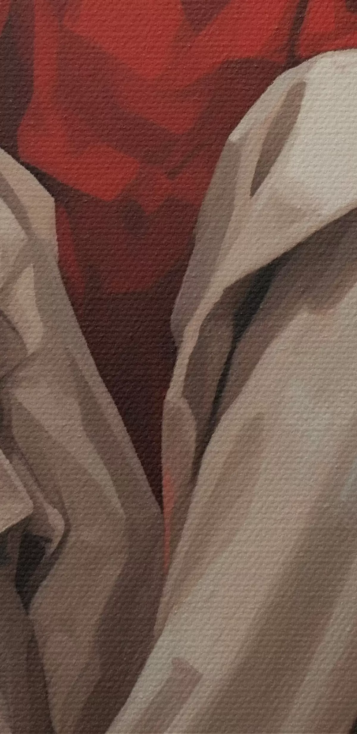 De fijne weving van draden op dit doek lijkt op het oppervlak van professionele schildersdoeken.