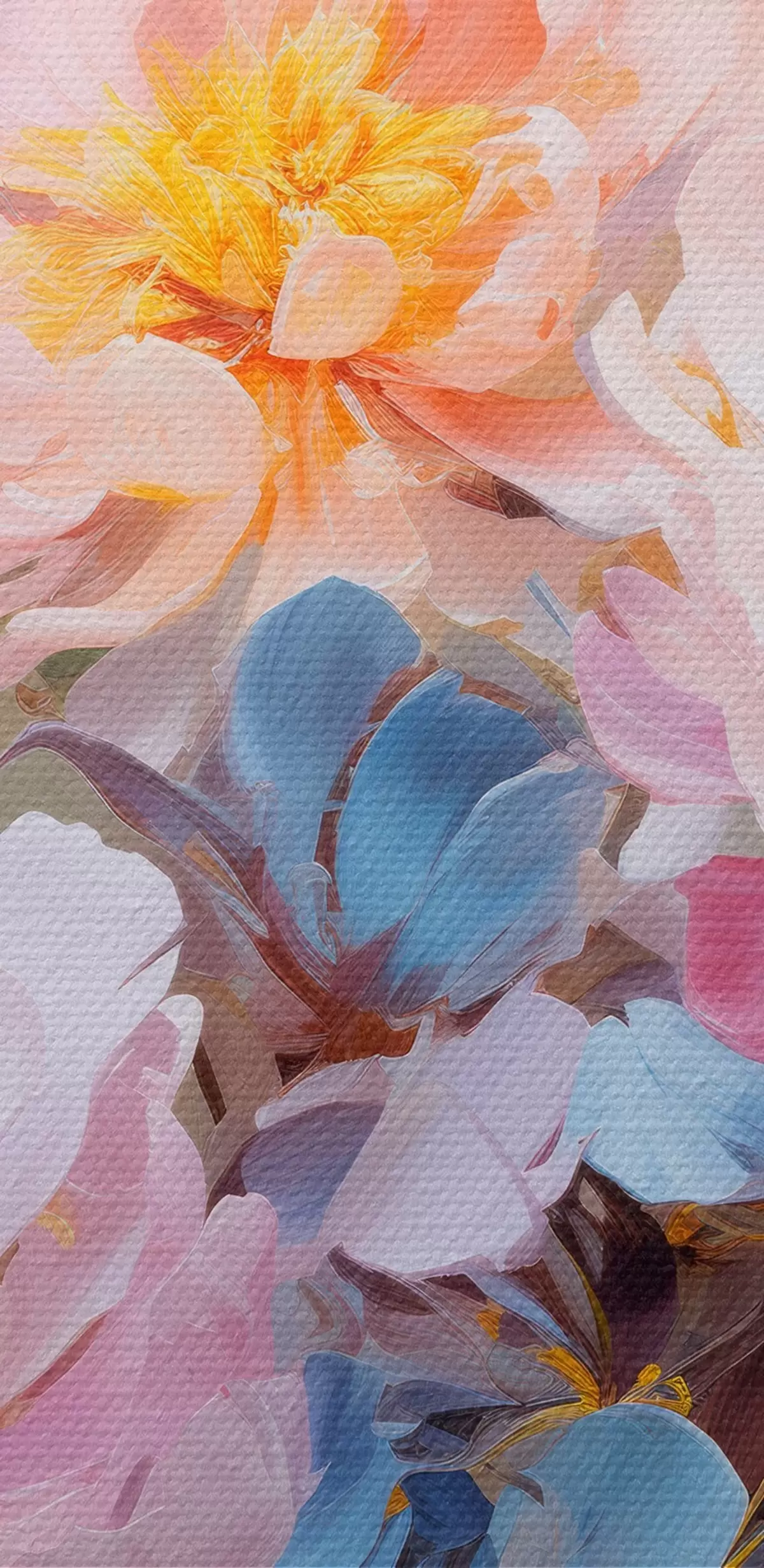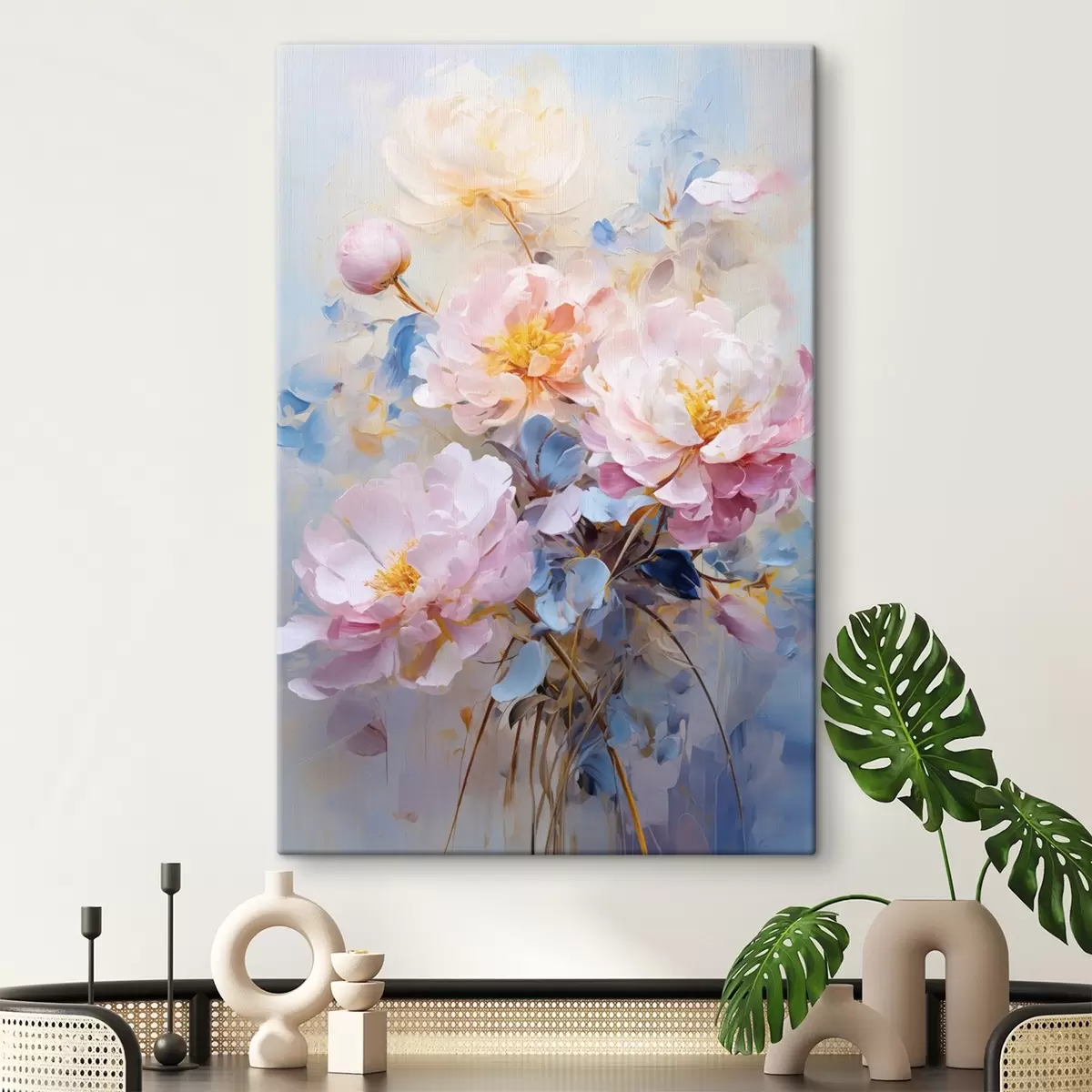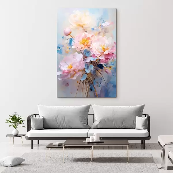 Schilderij Abstracte bloemen: roze en blauwe tinten Art. s45652