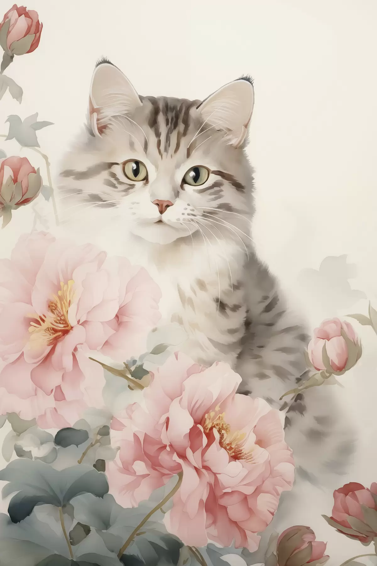 Schilderij Kat tussen bloemen Art. s45674