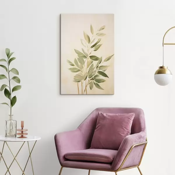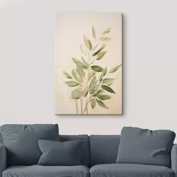 Schilderij Tak met groene bladeren op een lichtbeige achtergrond Art. s45689