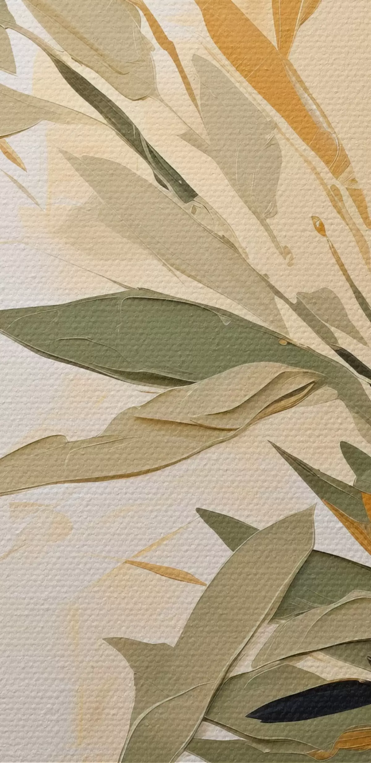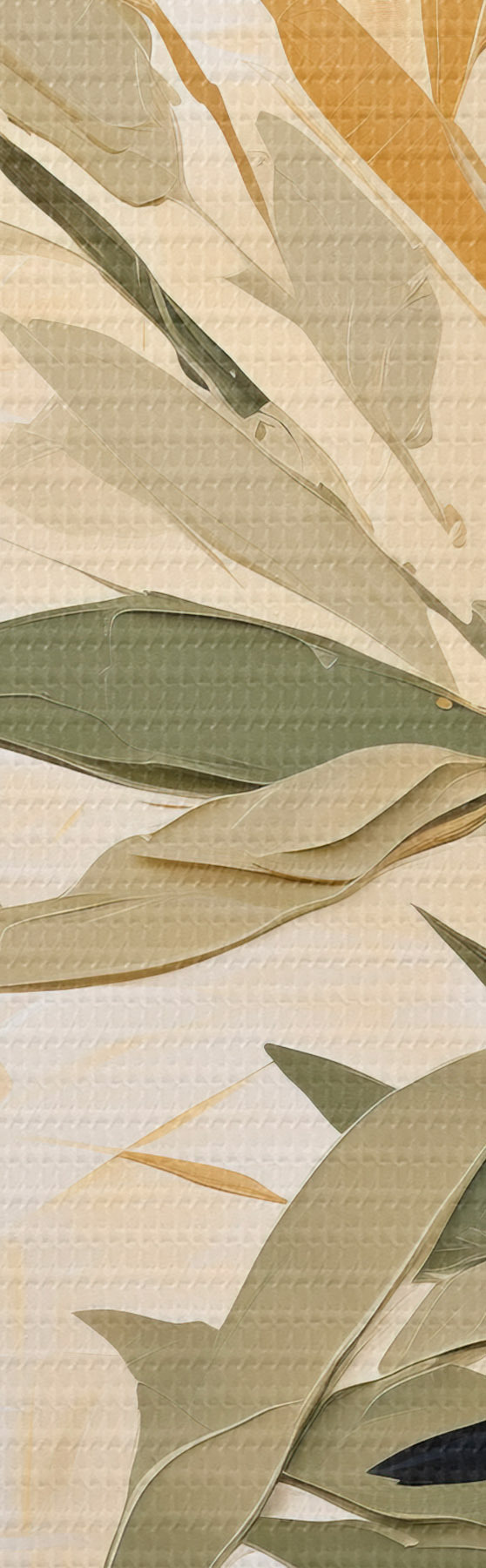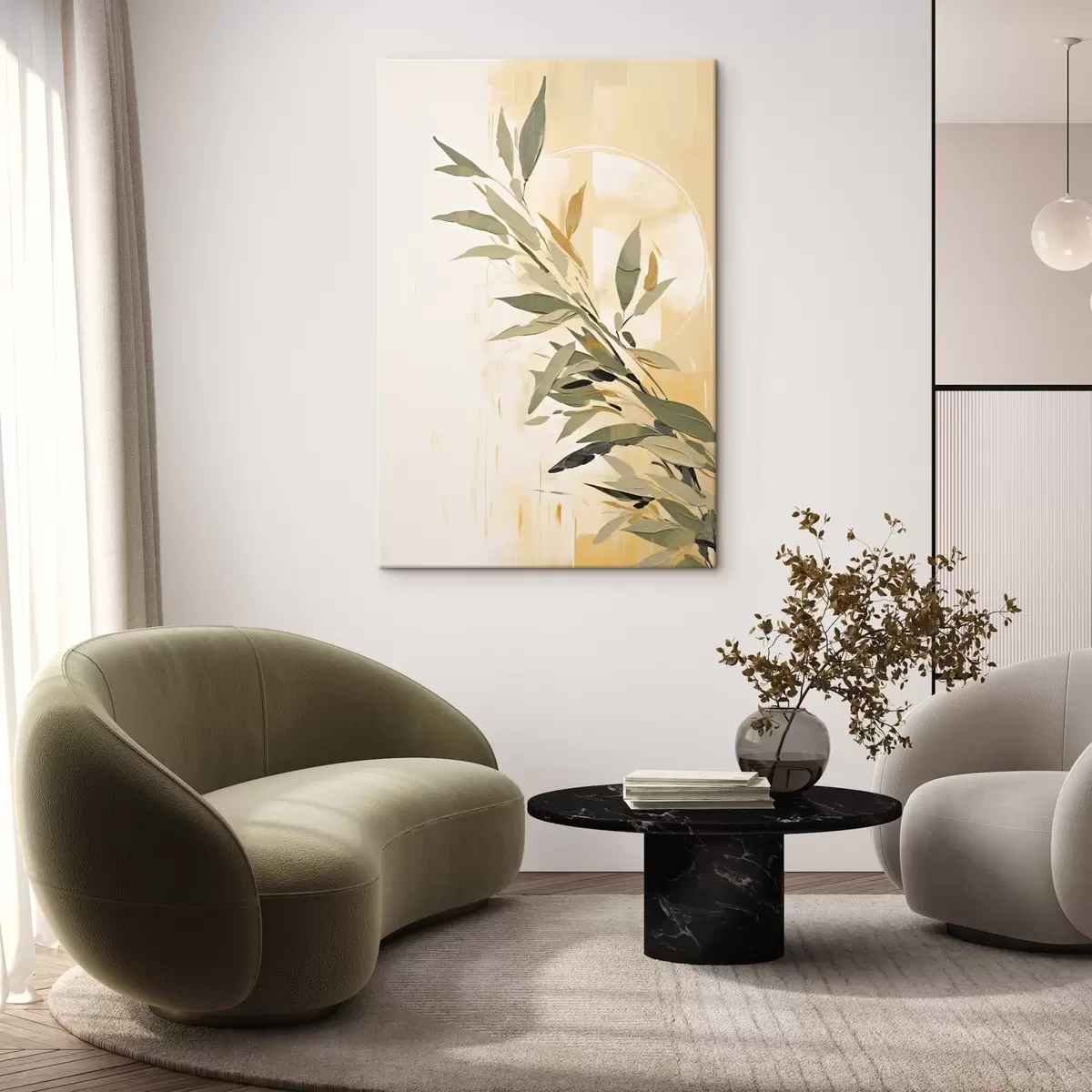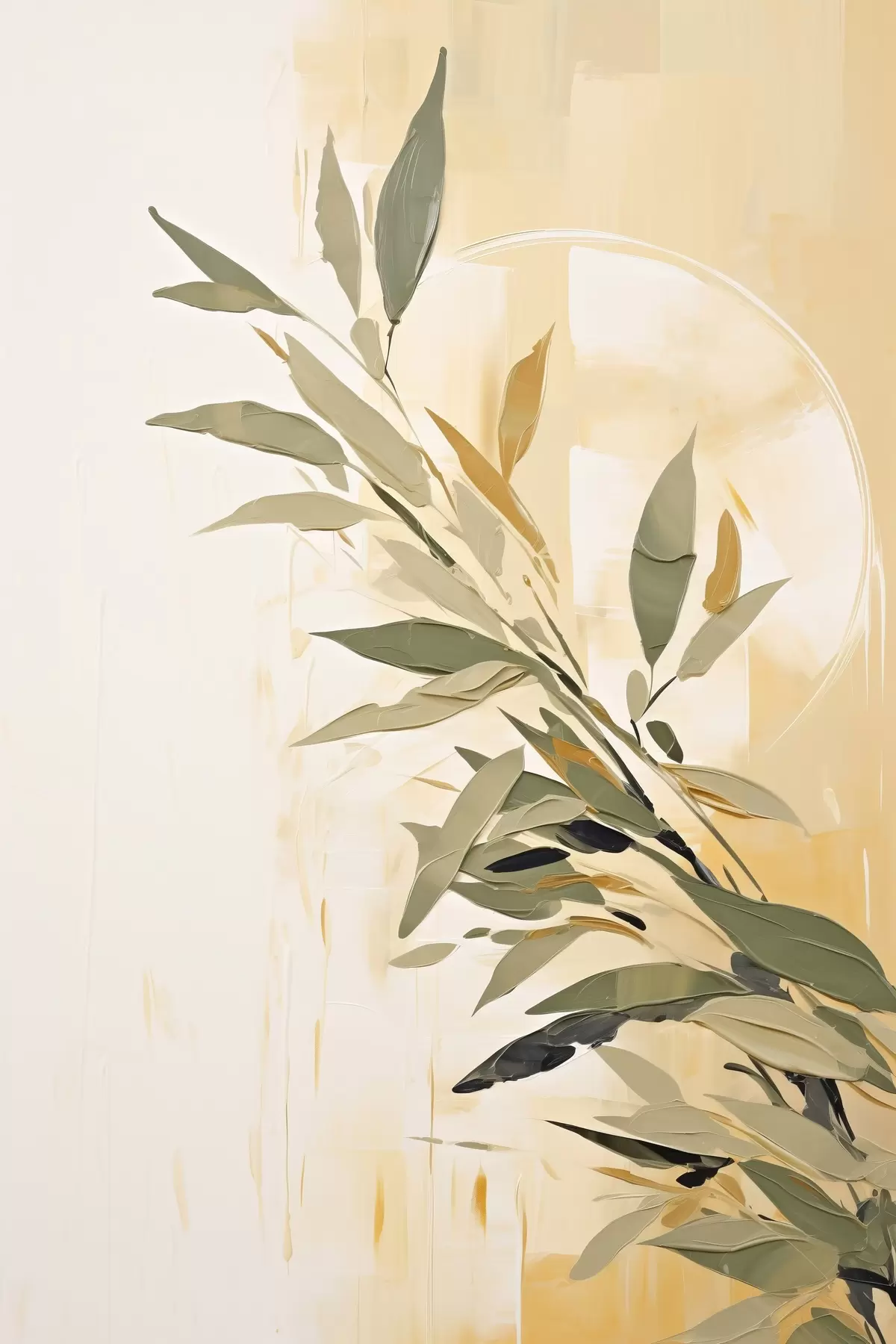 Schilderij Botanische tak met groene bladeren op een warme achtergrond Art. s45690