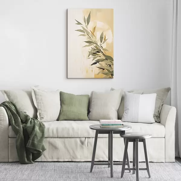 Schilderij Botanische tak met groene bladeren op een warme achtergrond Art. s45690