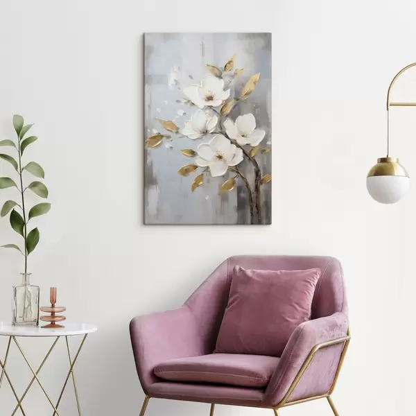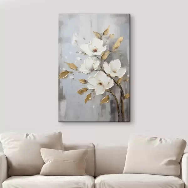 Schilderij Tak met witte bloemen en geeloranje bladeren Art. s45692