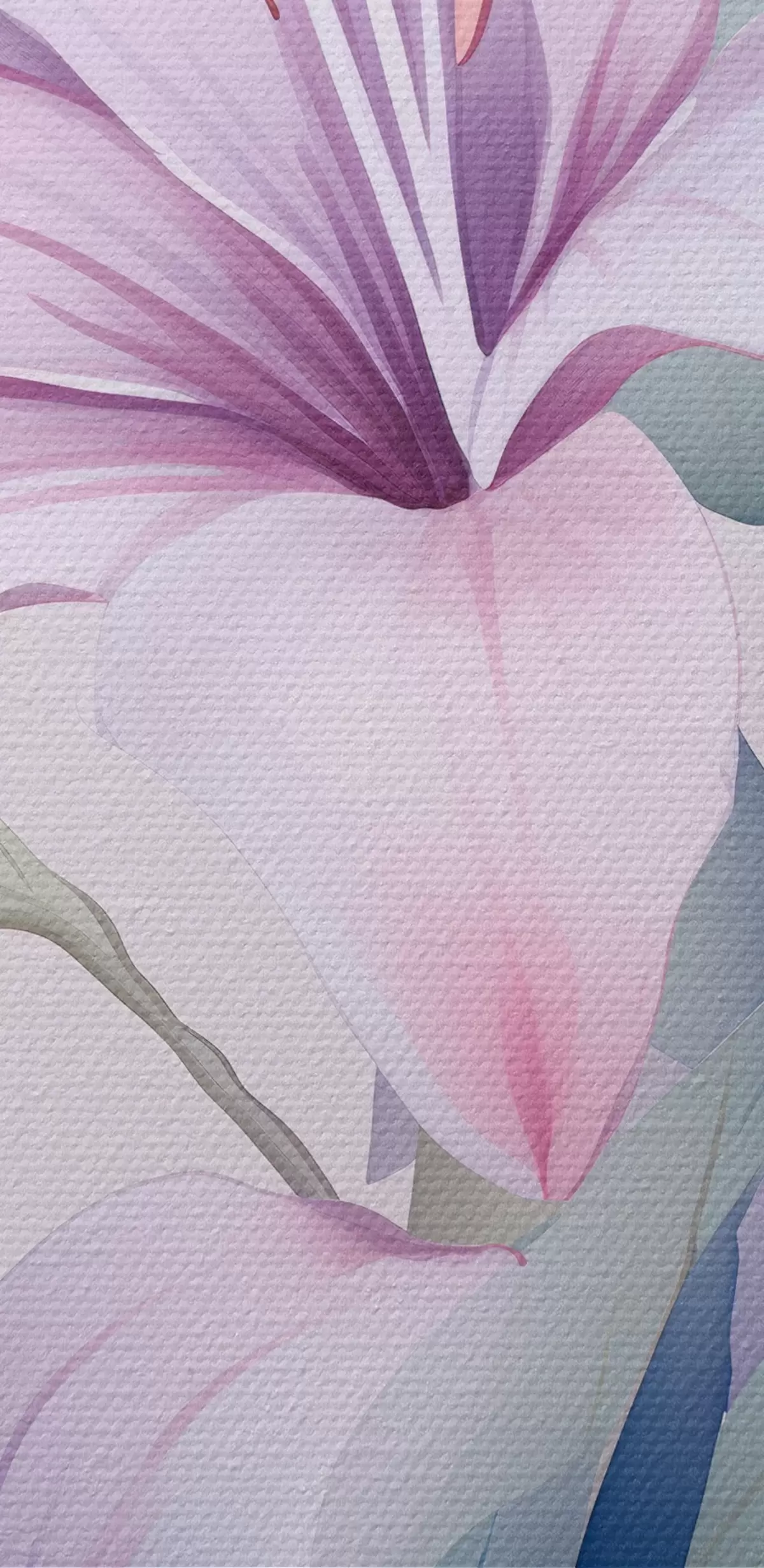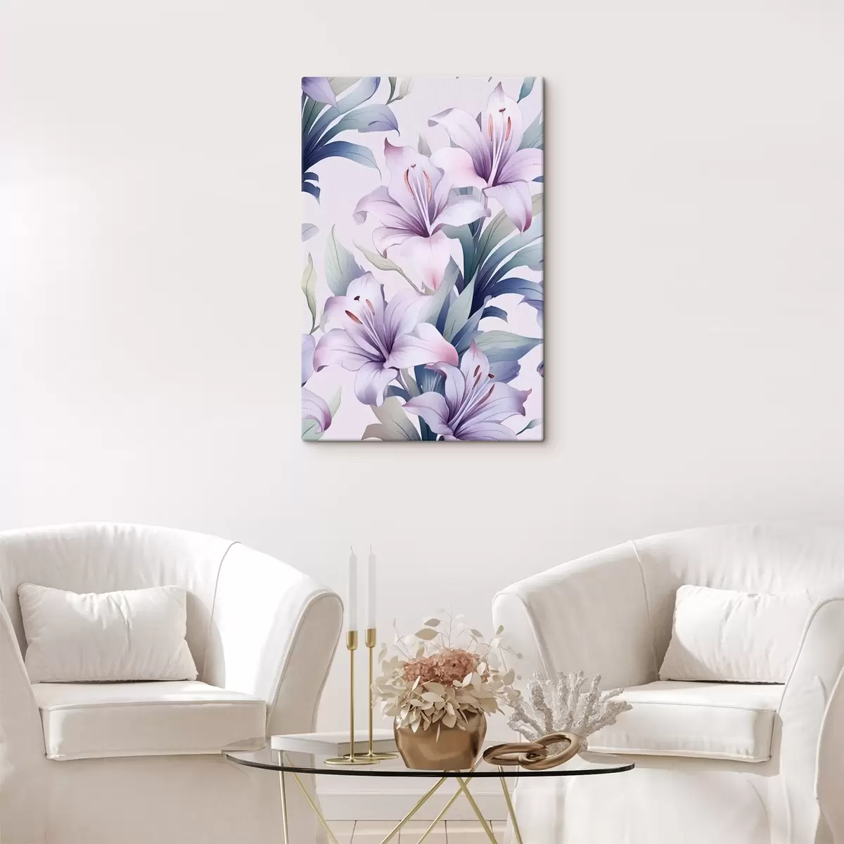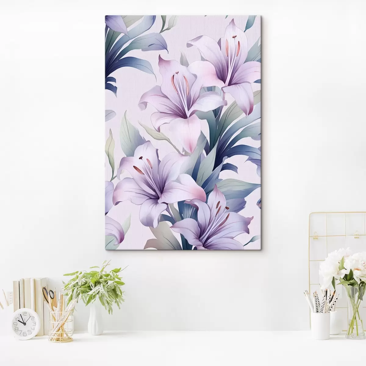 Schilderij Grote roze-paarse lelies met groene bladeren Art. s45698