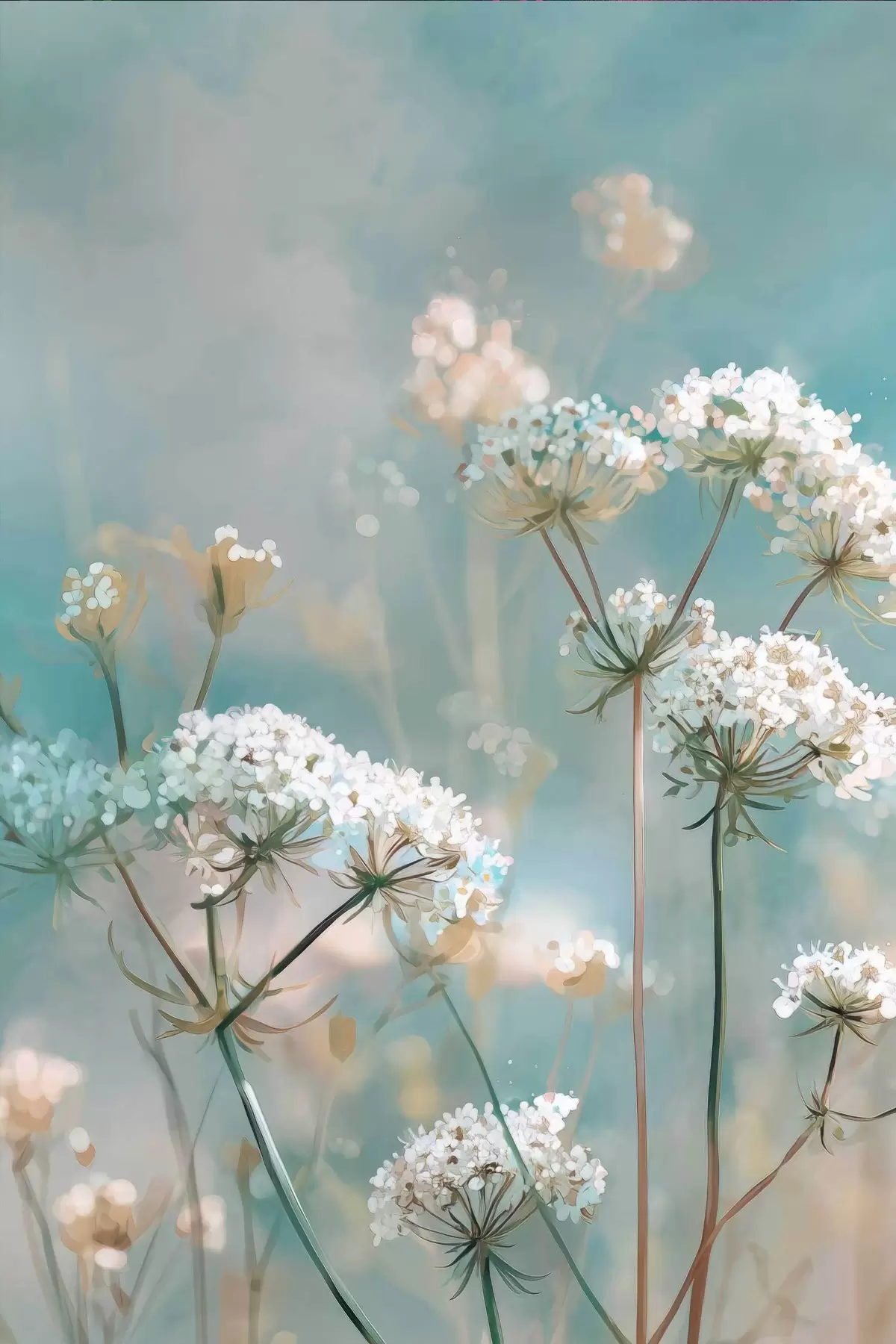 Schilderijen Queen Anne's Lace-bloemen in aquarelstijl op een blauwe achtergrond s45721