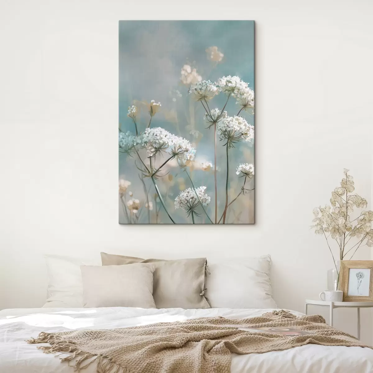 Schilderij Queen Anne's Lace-bloemen in aquarelstijl op een blauwe achtergrond Art. s45721