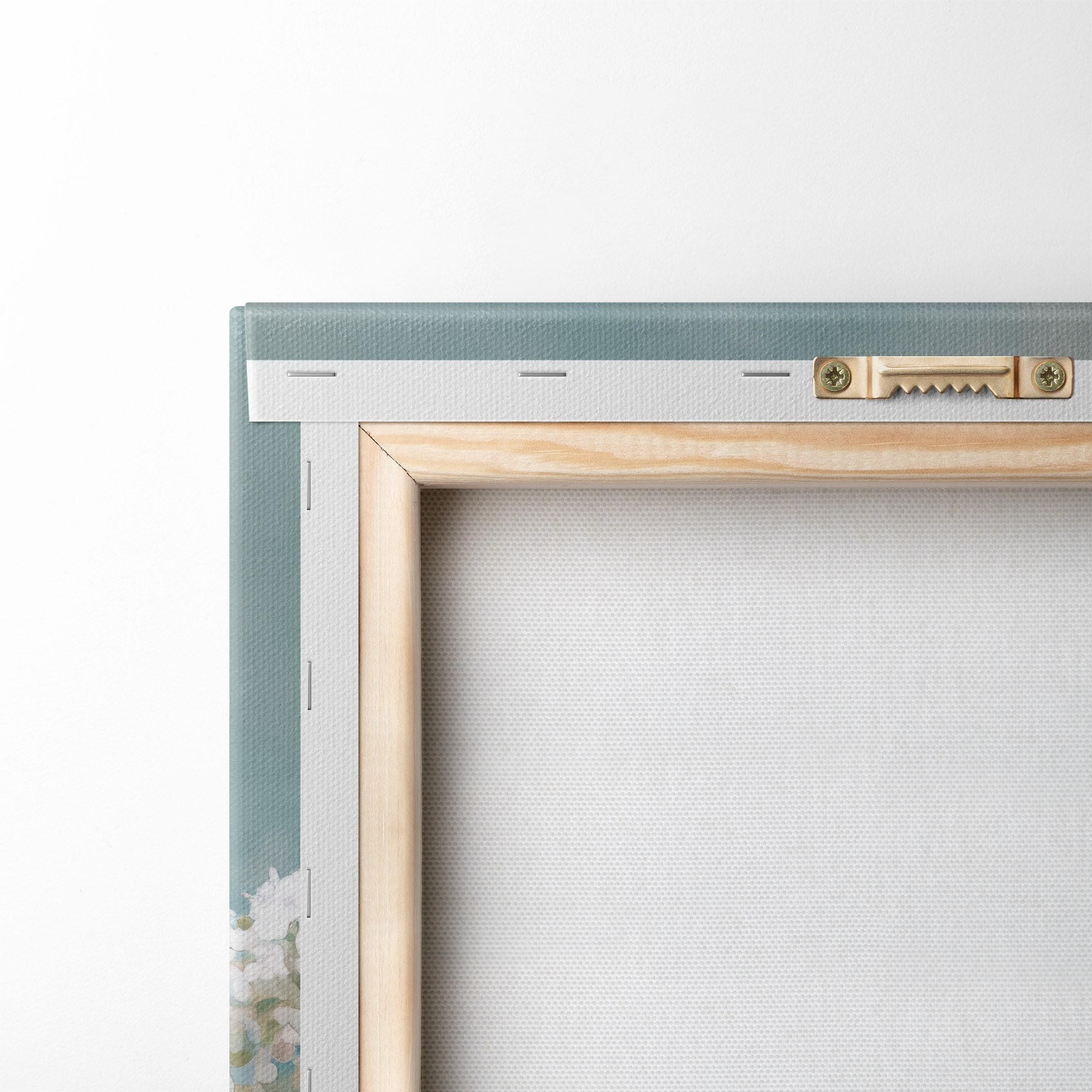 Om het doek op te spannen op spielatten zonder de afbeelding te beschadigen, gebruiken we gespiegeld beeld.