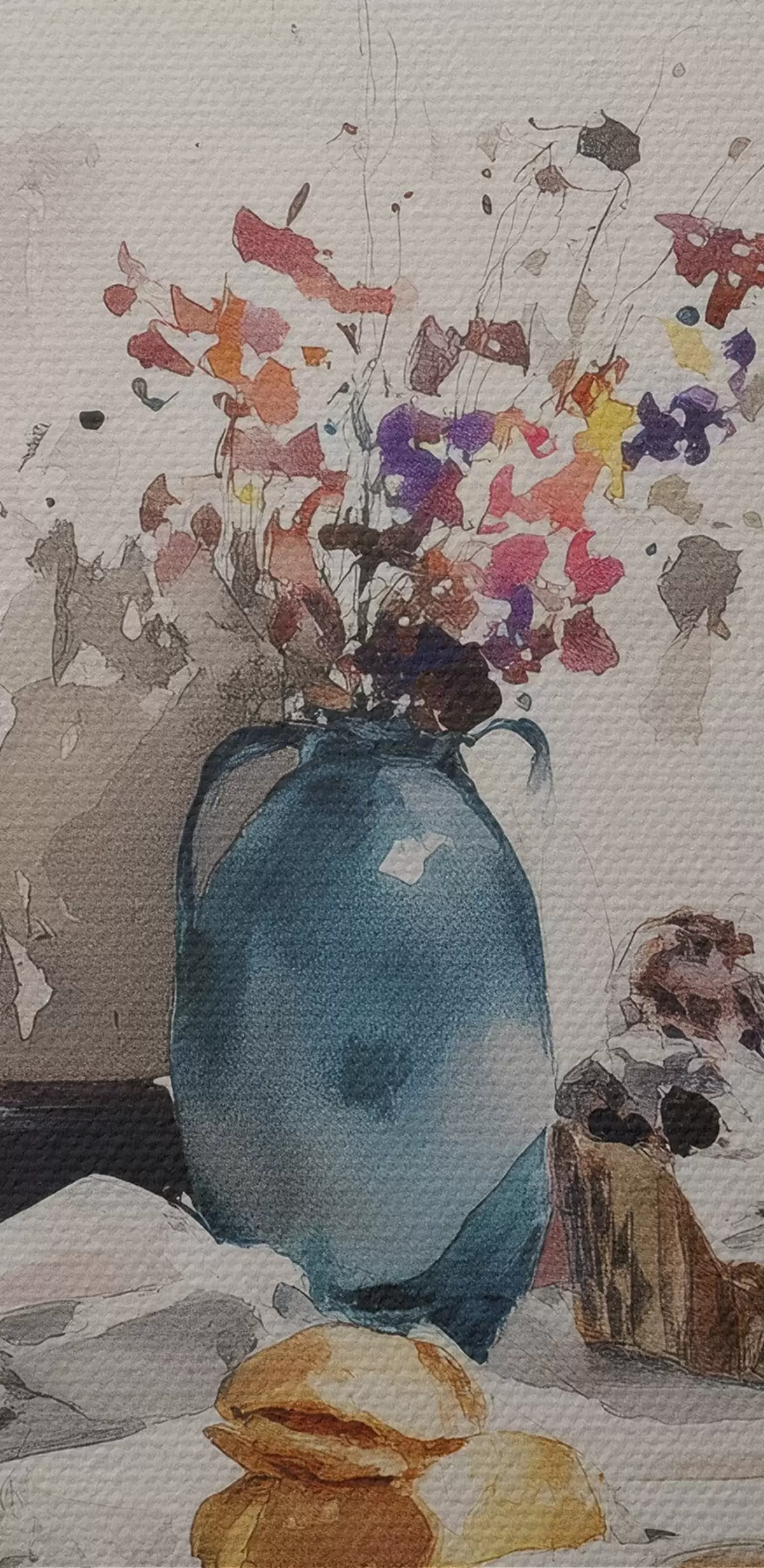 Het schilderij kan direct na ontvangst worden opgehangen. Het schilderij wordt opgespannen op een 2 cm breed houten spieraam.
