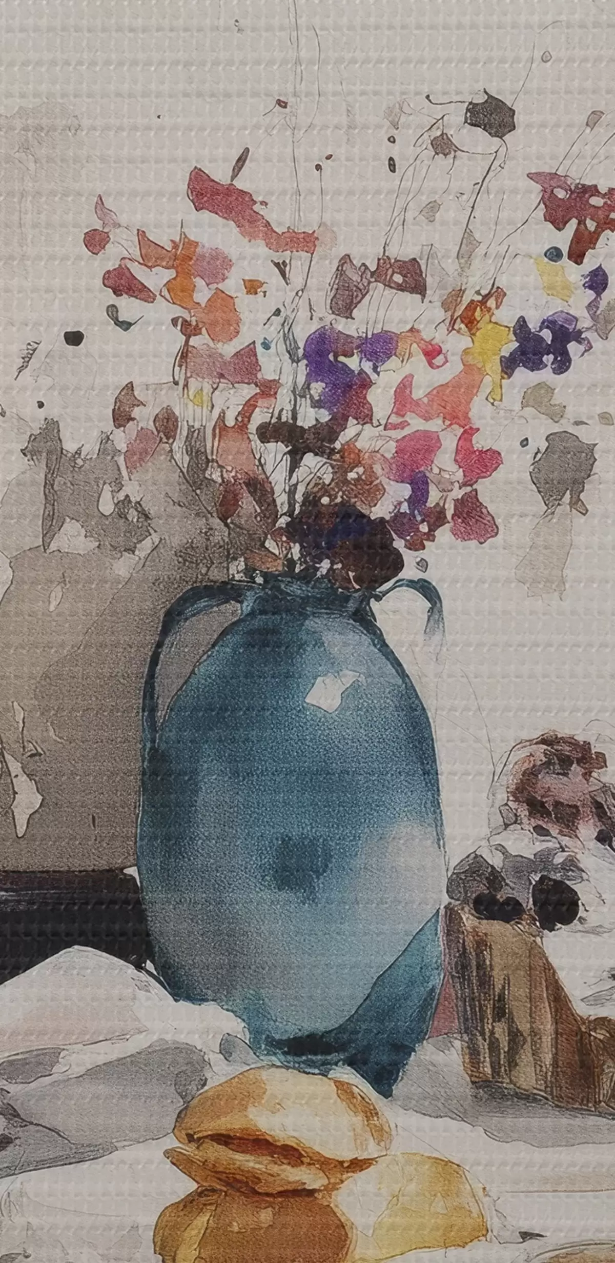 De fijne weving van draden op dit doek lijkt op het oppervlak van professionele schildersdoeken.