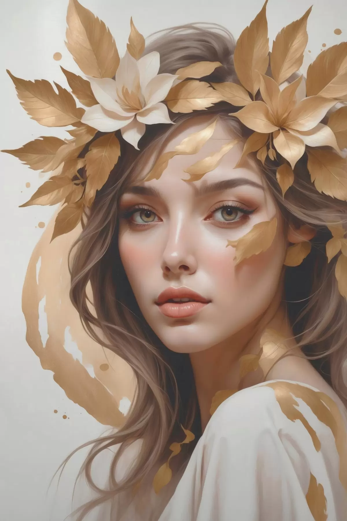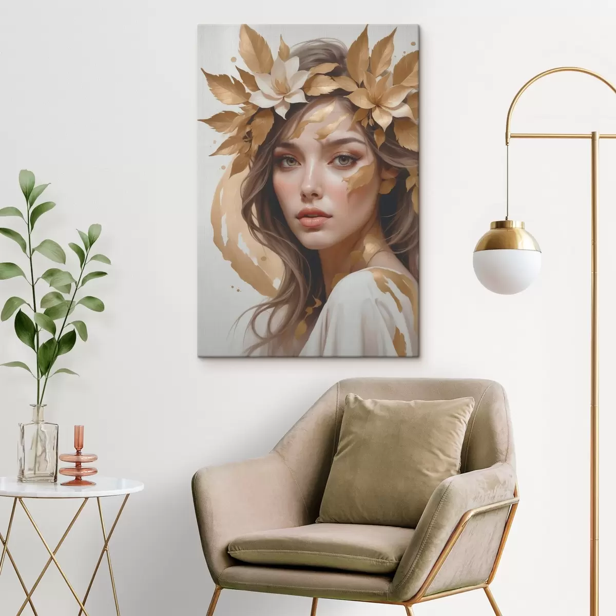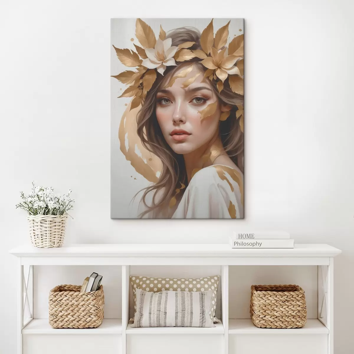 Schilderijen Een vrouw met bladeren in haar haar s45748
