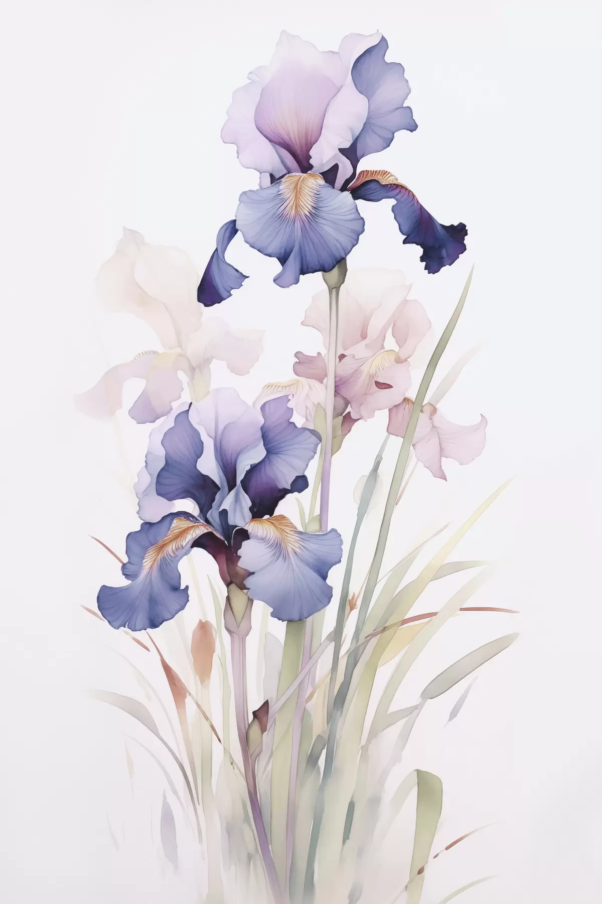 Schilderij Irissen imitatie van aquarel Art. s45762