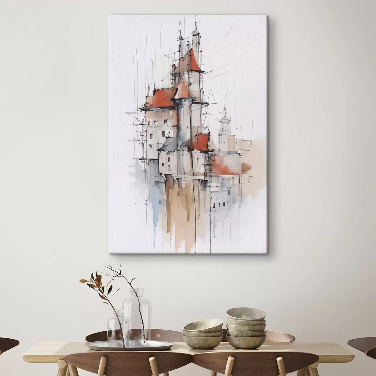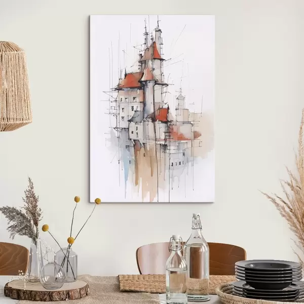 Schilderij Huizen imitatie schets en aquarel Art. s45764