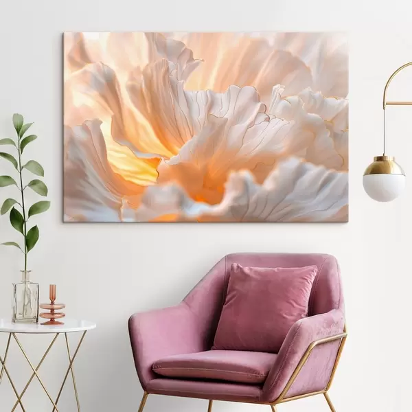 Schilderij Delicate bloemblaadjes in warme tinten met geeloranje randen Art. s45820