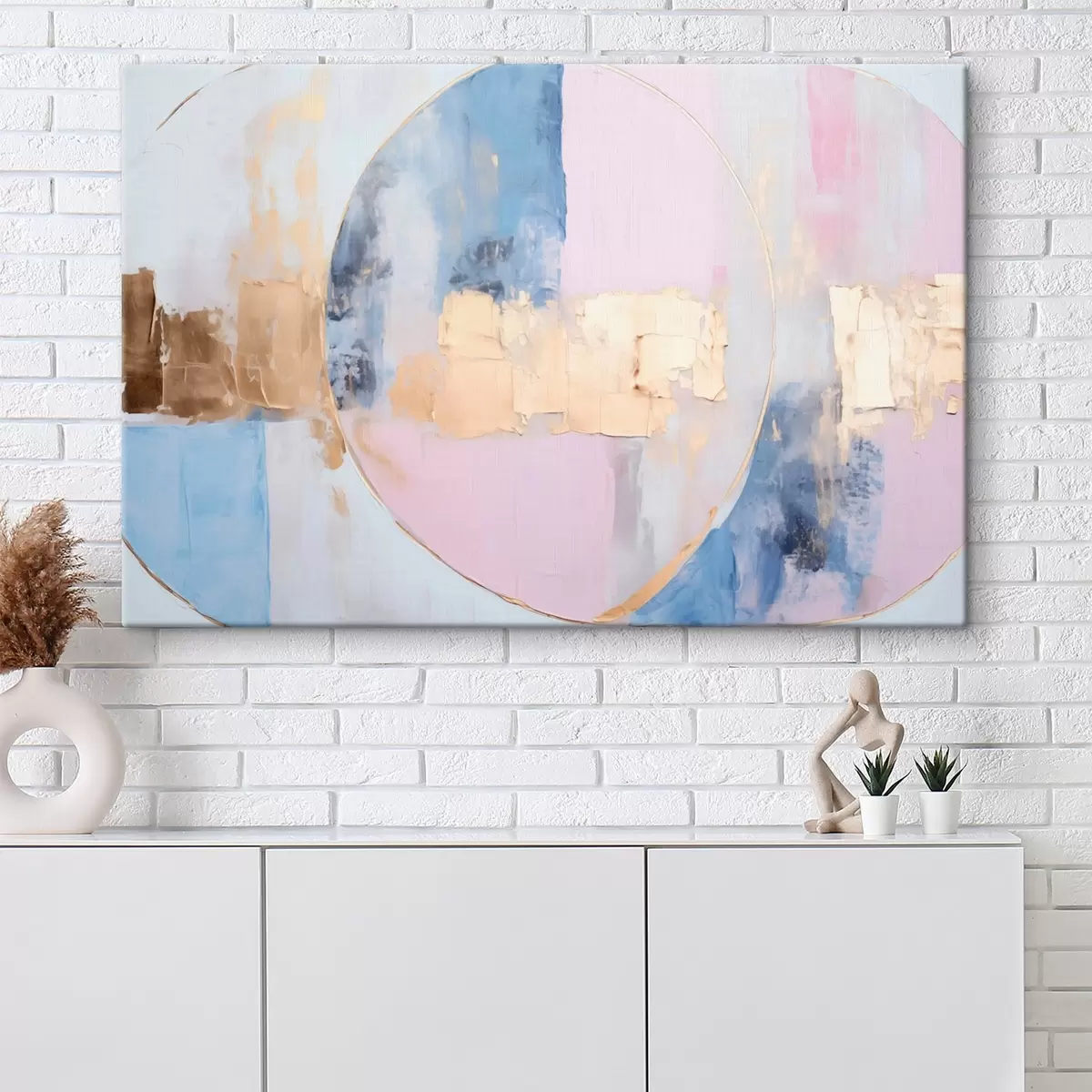 Schilderij Abstractie in blauw-roze cirkels Art. s45821
