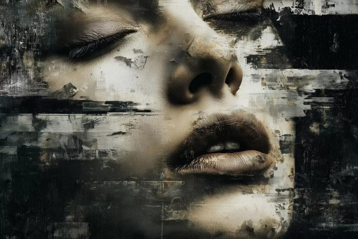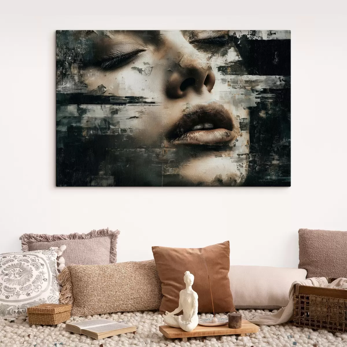 Schilderij Abstract vrouwelijk portret met glitch-effect en texturen Art. s45873