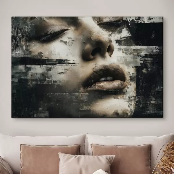 Schilderij Abstract vrouwelijk portret met glitch-effect en texturen Art. s45873