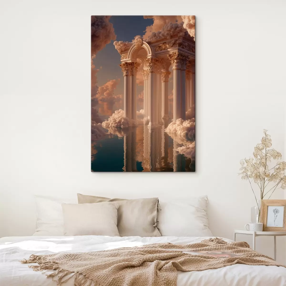 Schilderij Kolommen in de wolken, reflecties op het water Art. s45881