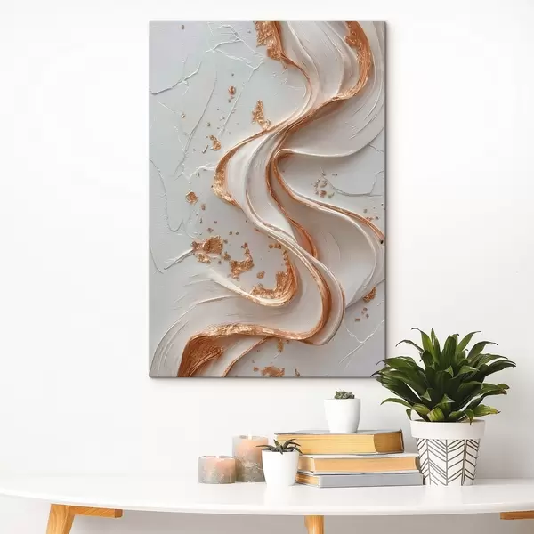 Schilderijen Wit-gele gestructureerde streken met metallic accenten s45906