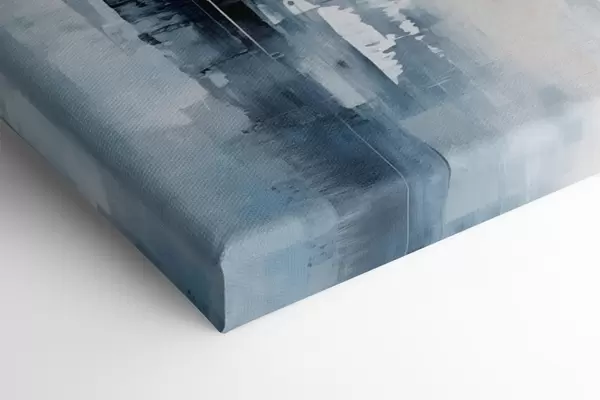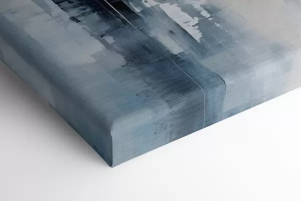 Schilderij Abstracte schilderijimitatie met blauwe, grijze en witte kleuren, verticale lijnen en geometrische vormen Art. s45927