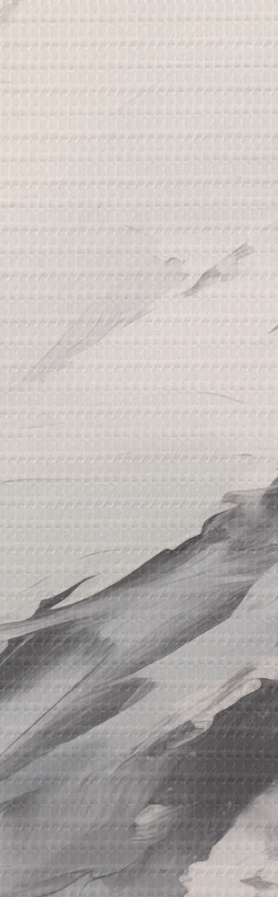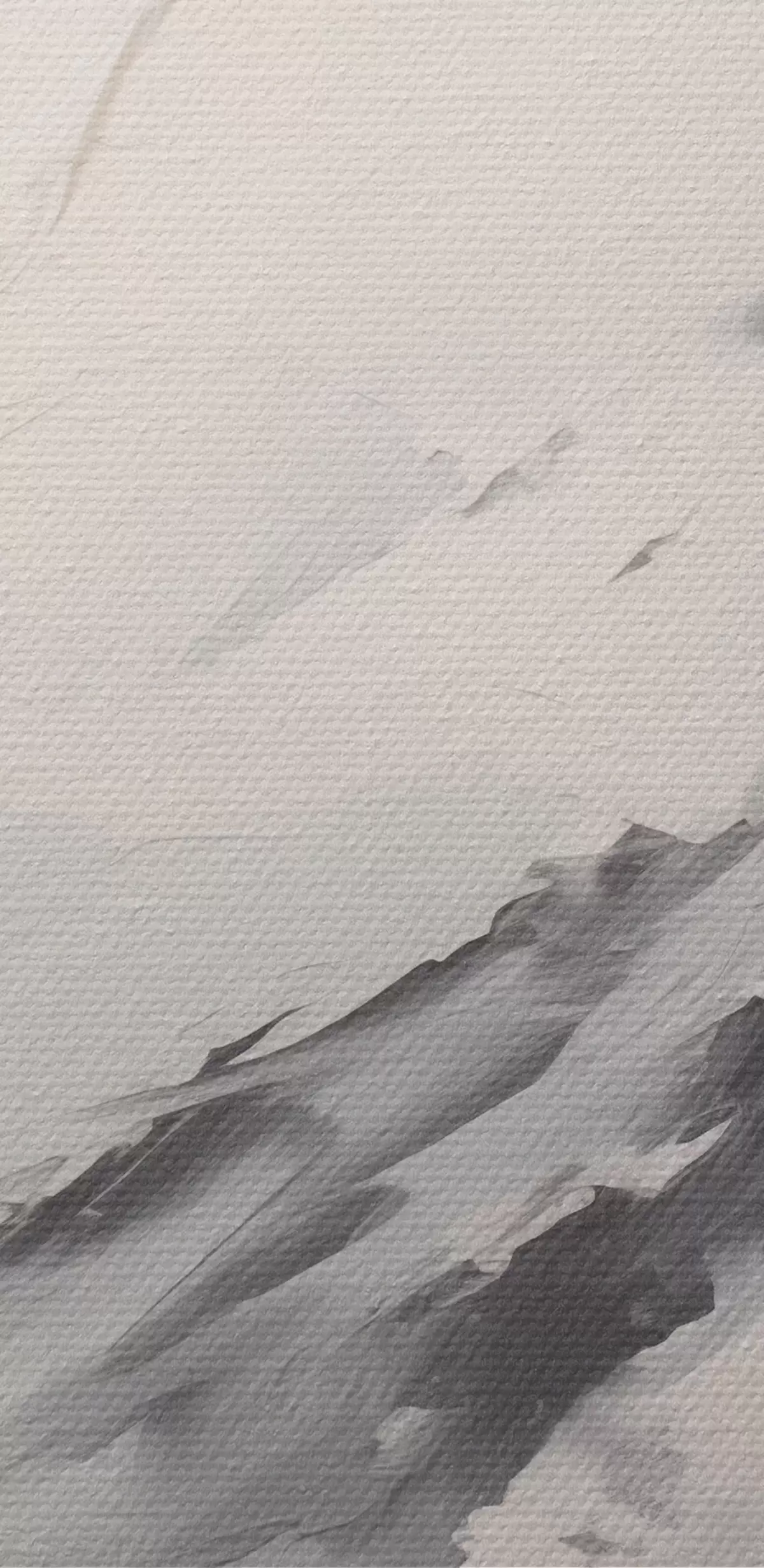 Schilderijen Besneeuwde bergtoppen met grijze schaduwen, grijze lucht, penseelstreken, gestructureerd, minimalistisch s45932