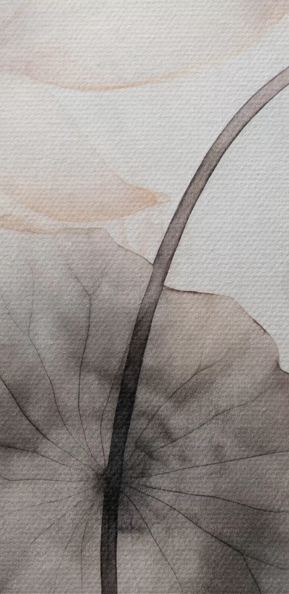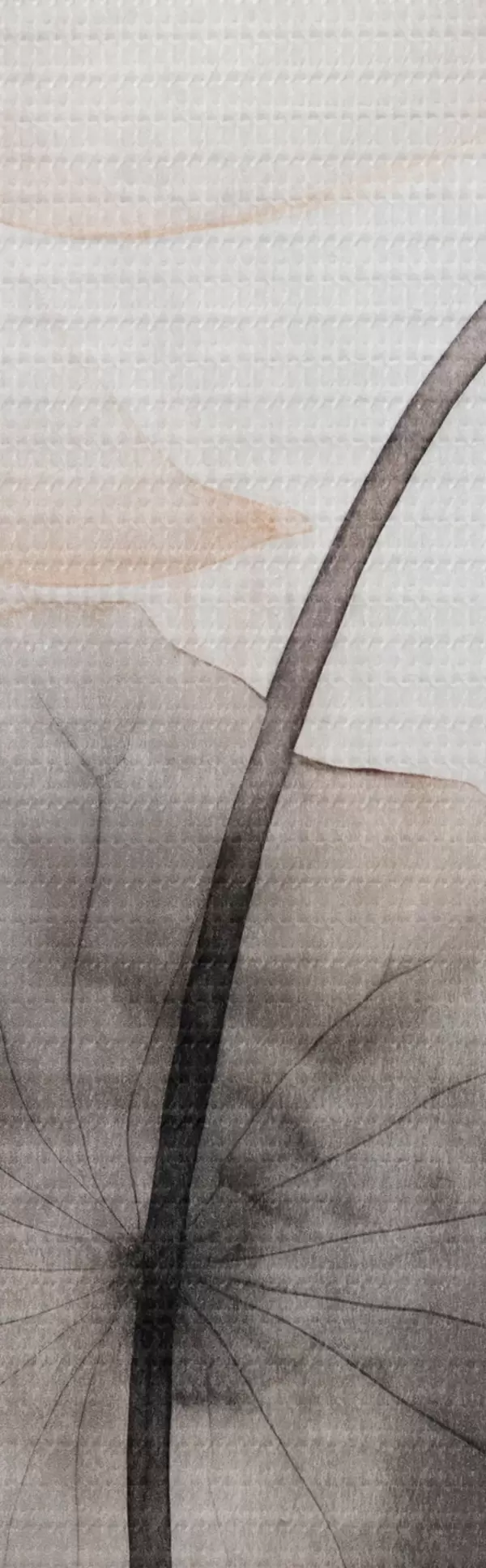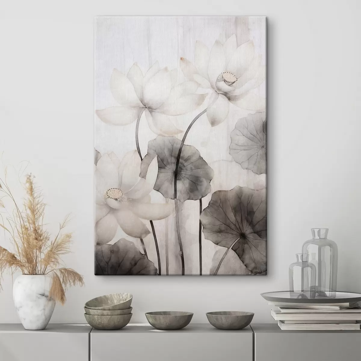 Schilderijen Witte lotusbloemen met textuur en donkere bladeren, lichte achtergrond, minimalistisch ontwerp s45937