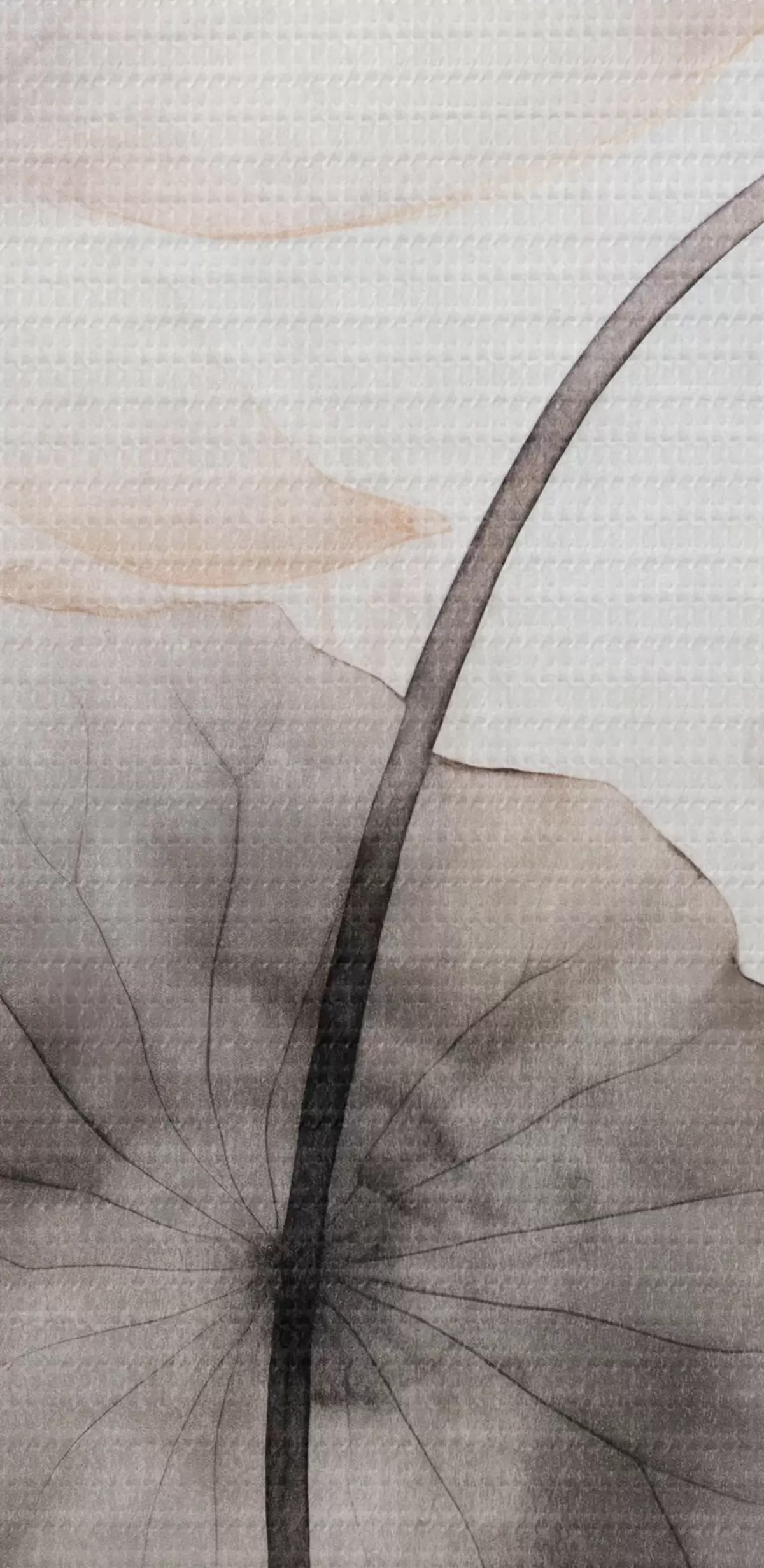 Schilderij Witte lotusbloemen met textuur en donkere bladeren, lichte achtergrond, minimalistisch ontwerp Art. s45937