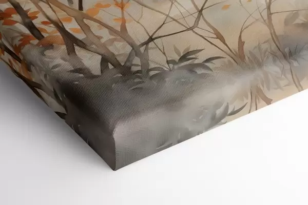 Schilderij Herfstbomen met oranje bladeren en takken, zachte aquarelstijl, delicate penseelstreken Art. s45941