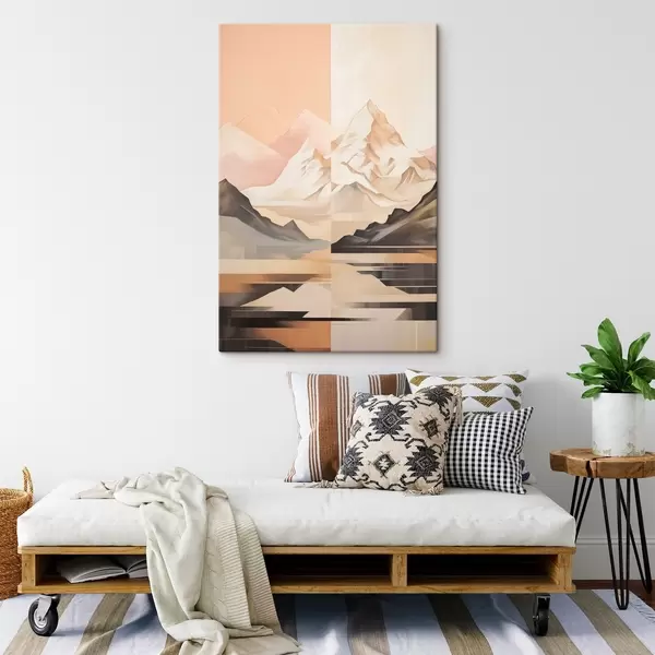 Schilderij Abstract landschap met bergen en een meer, pastelkleuren, minimalistische stijl Art. s45948