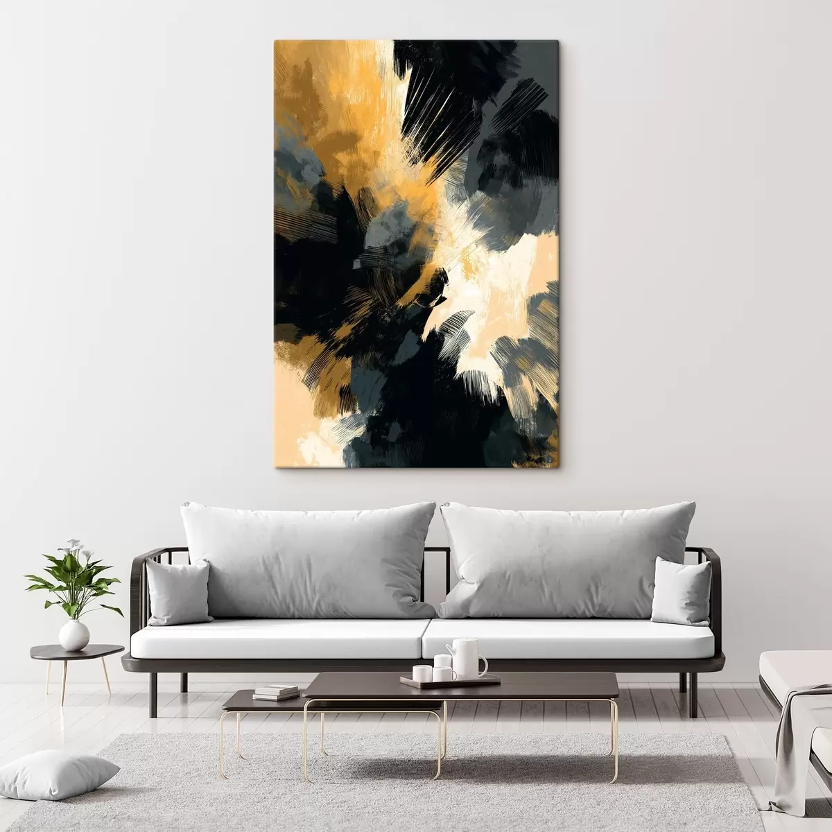 Het schilderij kan direct na ontvangst worden opgehangen. Het schilderij wordt opgespannen op een 2 cm breed houten spieraam.